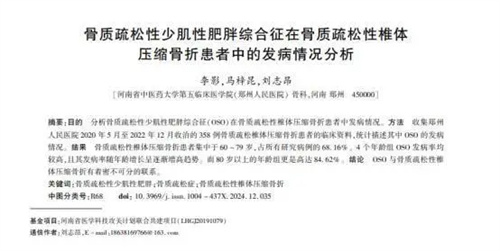[1]李影.骨质疏松性少肌性肥胖综合征在骨质疏松性椎体压缩骨折患者中的发病情况分析,2024-06-28